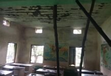 गिरते – पडते स्कूल पहुॅचे तो पता चला छत टिकी है बल्लियो के सहारे