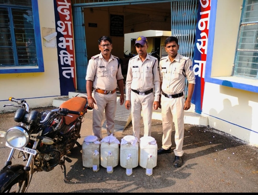 दिनांक 14.10.2023 को मुखबिर द्वारा सूचना मिली कि ग्राम बिछुआ से करकोटी तरफ एक व्यक्ति मोटर सायकल में अवैध रूप से भारी मात्रा में शराब बिक्री के लिये ले जाने वाला है। थाना प्रभारी कान्हीवाड़ा कार्य,मोहनीश बैस के नेतृत्व में तत्काल थाना स्तर पर पुलिस टीम गठित कर मुखबीर द्वारा बताये स्थान पर करकोटी से पाथरफोड़ी रोड नहर पुल के पास ग्राम करकोटी में हमराही स्टाफ व साक्षियो के नाकाबंदी कर इंतजार किये जो कुछ देर बाद गुखबिर के बताये अनुसार बिछुआ तरफ के एक व्यक्ति मोटर सायकल क्र. MH-31-DA-3413 से आते दिखाई दिया जिससे रोकने का प्रयास किया गया तो वह व्यक्ति मौके से भागने लगा जिसे हमराही स्टाफ के मदद से रोका गया जिसे पास चेक करने पर मोटर सायकल के पीछे 15-15 लीटर के 2-2 प्लास्टिक के डिब्बे कुल 04 डिब्बो में 60 लीटर हाथ भट्टी कच्ची महुआ की शराब कीमती करीब 6000 रूपये की होना पाई गई। जिससे उसका नाम पता पूछने पर अपना नाम लिकेश पिता मोहपाल धुर्वे उम्र 25 साल निवासी ग्राम बिछुआ थाना कान्हीवाड़ा का होना पाया गया आरोपी से शराब रखने संबंध में वैध दस्तावेज पूछने पर नही होना बताया जो आरोपी का कृत्य धारा 34(2) आबकारी एक्ट का घटित करना पाये जाने से उसके कब्जे से 60 लीटर हाथ भट्टी कच्ची महुआ की अवैध शराब एक डिस्कव्हर मोटर सायकल क्र. MH-31-DA – 3413 एवं एक नारियल की रस्सी विधिवत कार्यवाही कर जप्ती की जाकर मौके पर सीलबंद किया गया एवं आरोपी को गिरफ्तार कर आरोपी विकेश धुर्वे के विरूद्ध अप. क्र. 329 / 23 धारा 34 (2) आबकारी एक्ट का अपराध कायम कर आरोपी को माननीय न्यायालय के समक्ष पेश किया गया।