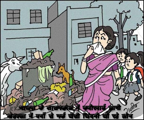 यह बेहद ही शर्मनाक और चिंता का विषय है कि नगरपालिका द्वारा सडक ,पानी और प्रकाश की व्यवस्था के लिए बाकायदा टैक्स लिया जाता है और जब सफाई की बात की जाये तो जवाब मिलता है सफाई कर्मी नही हैा जबकि केन्द्र में भाजपा की सरकार है राज्य में भाजपा की सरकार है यहा तक कि इस वार्ड में जो पार्षद है वह भाजपा से टिकट पाकर पार्षद पद पर निर्वाचित हुए है लेकिन बेबसी तो देखिये बहाना बना दिया कि सफाई कर्मी नही है।