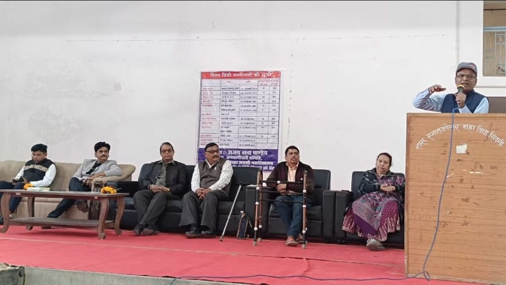 कार्यक्रम के संयोजक प्रोफेसर सत्येन्द्र कुमार शेन्डे ने बताया कि 2025 विश्व हिंदी सम्मेलन का स्वर्ण जयंती वर्ष है. बताया कि 10 जनवरी 1975 को नागपुर में पहला विश्व हिंदी सम्मेलन आयोजित हुआ था. तब से लेकर आज तक कुल 12 बार विश्व हिंदी सम्मेलनों का आयोजन दुनिया के विभिन्न हिस्सों में किया गया है. सबसे अधिक भारत और मॉरीशस में तीन-तीन बार विश्व हिंदी सम्मेलन आयोजित हुए हैं. लंदन और न्यूयॉर्क में भी विश्व हिंदी सम्मेलन आयोजित हुए. प्रोफेसर शेन्डे ने बताया कि 2015 में भोपाल में आयोजित दसवें विश्व हिंदी सम्मेलन में अब तक सबसे अधिक पचास देशों के 2000 से ज्यादा प्रतिनिधि शामिल हुए थे. कार्यक्रम की अध्यक्षता करते हुए पीजी कॉलेज की जन भागीदारी समिति के अध्यक्ष अजय बाबा पांडेय ने कहा कि अपने राष्ट्र की सर्वांगीण उन्नति के लिए हमें हिंदी भाषा को अपनाना होगा. हिंदी को जानना- समझना होगा . हिंदी हमारे व्यवहार की भाषा है. पीएम काॅलेज ऑफ एक्सीलेंस के प्राचार्य डॉ रविशंकर नाग ने कहा कि हिंदी के लेखक अक्षर ब्रह्म के उपासक होते हैं. विद्यार्थियों से हिंदी के सही उपयोग का आग्रह किया. छात्रा रक्षा राहंगडाले और छात्रा योगेश्वरी बरमैया ने स्वरचित कविताओं का भावपूर्ण पाठ किया. आयोजन में छात्र मेहुल सिंह बिसेन, छात्रा रक्षा राहंगडाले, आरती सनोडिया, गरिमा सेंगर, रानी पगारे, निकिता पंचेश्वर, अंबिका मिश्रा तथा प्रद्युम्न पगारे का विशेष सहयोग रहा. कार्यक्रम का सफल संचालन स्पोर्ट्स ऑफिसर के सी राउर ने किया. कार्यक्रम में डॉ सविता मसीह और ज्योत्सना नावकर ने भी सारगर्भित विचार रखे. डाॅ राकेश चौरासे रितु गुप्ता, नीलम कश्यप,उमाशंकर वर्मा, अमितोष सनोडिया, छाया राय, डॉ दिनेश वर्मा, डाॅ संतलाल डहेरिया सहित कॉलेज स्टाफ और एमए हिंदी तथा स्नातक कक्षाओं के छात्र-छात्राएं बड़ी संख्या में उपस्थित रहे.