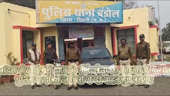 दिनाँक 11 जनवरी 25 को शाम करीबन 18.30 बजे थाना प्रभारी बंडोल को खबर मिलती है कि ग्राम बांदरा के जंगल में सागौन के पेड के नीचे कुछ लोग ताश पत्तो पर रूपये पैसो का दांव लगाकर हार जीत जुंआ मन्ना का खेल, खेल रहे है जिसकी सूचना पाकर थाना प्रभारी बंडोल उनि. श्री चंद मरावी के द्वारा तत्काल कार्यवाही करते हुये टीम के साथ ग्राम बांदरा के जंगल में जाकर दबिश देते है जिसके बाद पुलिस को देखकर मौके से जुआङियान भागने का प्रयास करने लगते है जिन्हे घेराबंदी कर धर दबोचा गया, जिसमे छःजुआङियान पकडे गये जिनसे उनका नाम पता पूछने पर उन्होने अपना नाम (1) अनिल पिता कंचन सिंह बघेल उम्र. 47 साल निवासी तिघरा थाना बन्डोल (02) सन्तोष पिता लक्ष्मण बन्देवार उम्र. 49 साल निवासी लालमटिया मंगलीपेठ सिवनी (03) मुकेश पिता रमेश साहू उम्र. 37 साल निवासी बजरवाड़ा थाना बन्डोल (04) विजय पिता राधेश्याम साहू उम्र 32 साल निवासी ग्राम बजरवाड़ा थाना बन्डोल (05) संतलाल पिता गोविन्दा सेन उम्र. 45 साल निवासी कबीर वार्ड थाना डूंडासिवनी (06) जय बघेल पिता लालसिंह बघेल उम्र 37 साल निवासी फिल्टर चौक छिन्दवाड़ा चौक सिवनी के मिले जिनके फड व पास से ताश के 52 पत्ते व नगदी 14,640/ रूपये, 06 नग मोबाईल कीमती 35,500/-रूपये, एक अल्टो कार क्रं. एम पी 28 सी बी 7901 कीमती करीबन तीन लाख रूपये, एक मो.सा.क्रं. एम पी 22 एम जी 0573 कीमती करीब 15,000 रूपये कुल मशरूका 3,65,140/- रूपये (तीन लाख पैंसठ हजार एक सौ चालीस रूपये) को जप्त कर शील बंद कर कब्जा पुलिस मे लिया गया एवं धारा 13 जुआ एक्ट की कार्यवाही की गई। इस मामले में ताश के 52 पत्ते व नगदी 14,640/ रूपये, 06 नग मोबाईल कीमती 35,500/-रूपये, एक अल्टो कार क्रं. एम पी 28 सी बी 7901 कीमती करीबन तीन लाख रूपये, एक मो.सा.क्रं. एम पी 22 एम जी 0573 कीमती करीब 15,000 रूपये कुल मशरूका 3,65,140/- रूपये (तीन लाख पैंसठ हजार एक सौ चालीस रूपये) जप्त किये हैा