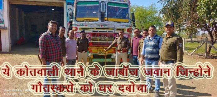 आज दिनांक 28/01/25 की सुबह मुखबिर सूचना प्राप्त हुई कि गौवंश तस्करो द्वारा मवेशियो को ट्रक में लोड कर कत्ल खाना नागपुर ले जाने हेतु लखनादौन तरफ से सिवनी निकलते नागपुर ले जाने की सूचना प्राप्त हुई। जिस सूचना पर तत्काल हमराह स्टाफ के रेड कार्यवाही छिन्दवाडा बायपास के पास जाम लगाकर की गई जो पुलिस को देख कर तस्करों द्वारा ट्रक को भागने का प्रयास किया गया। जिसे 12 चक्का ट्रक क्रमांक MP09HH1220 को रोकने पर आरोपियो द्वारा खेतो तरफ भागने का प्रयास किया जो पुलिस टीम के द्वारा पीछा व घेरा बंदी कर आरोपियो का पकडा गया। आरोपियो से गौवंश परिवहन के सबंध में पूछताछ जारी है।
