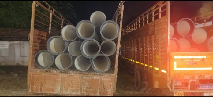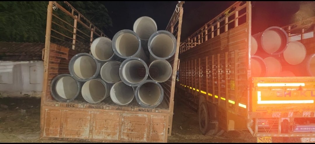 हमारे आफिस में फोन करके बताया कि न्यू शिवहरे होटल के सामने रखे पाईपो को दो ट्रक में क्रेन के द्वारा पाईप को भर रहे है