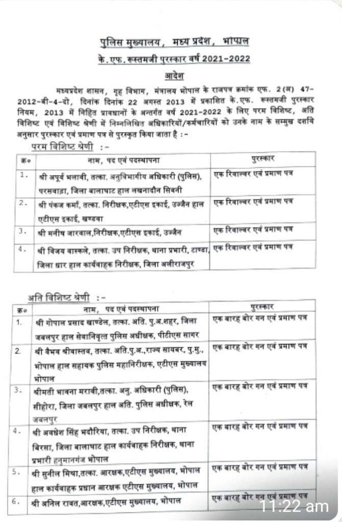 सिवनी – अनुविभागीय अधिकारी (पुलिस) लखनादौन अपूर्व भलावी द्वारा जिला बालाघाट में माओवादियों के विरुद्ध चलाए गए ऑपरेशन में महत्वपूर्ण भूमिका अदा करने के फल स्वरुप खटिया मोर्चा दलम के सक्रिय माओवादी संदीप कुंजम (इनामी 14 लाख) को गिरफ्तार करने में सफलता प्राप्त हुई थी। इस उत्कृष्ट कार्य हेतु एसडीओपी लखनादौन को के.एफ. रुस्तम जी पुरस्कार (एक रिवाल्वर एवं प्रमाण पत्र) मध्य प्रदेश शासन द्वारा पुरस्कृत किया जायेगा। पुलिस अधीक्षक सिवनी सुनील मेहता एवं पुलिस परिवार सिवनी की ओर से बहुत-बहुत बधाई एवं शुभकामनाएं प्रेषित की है।