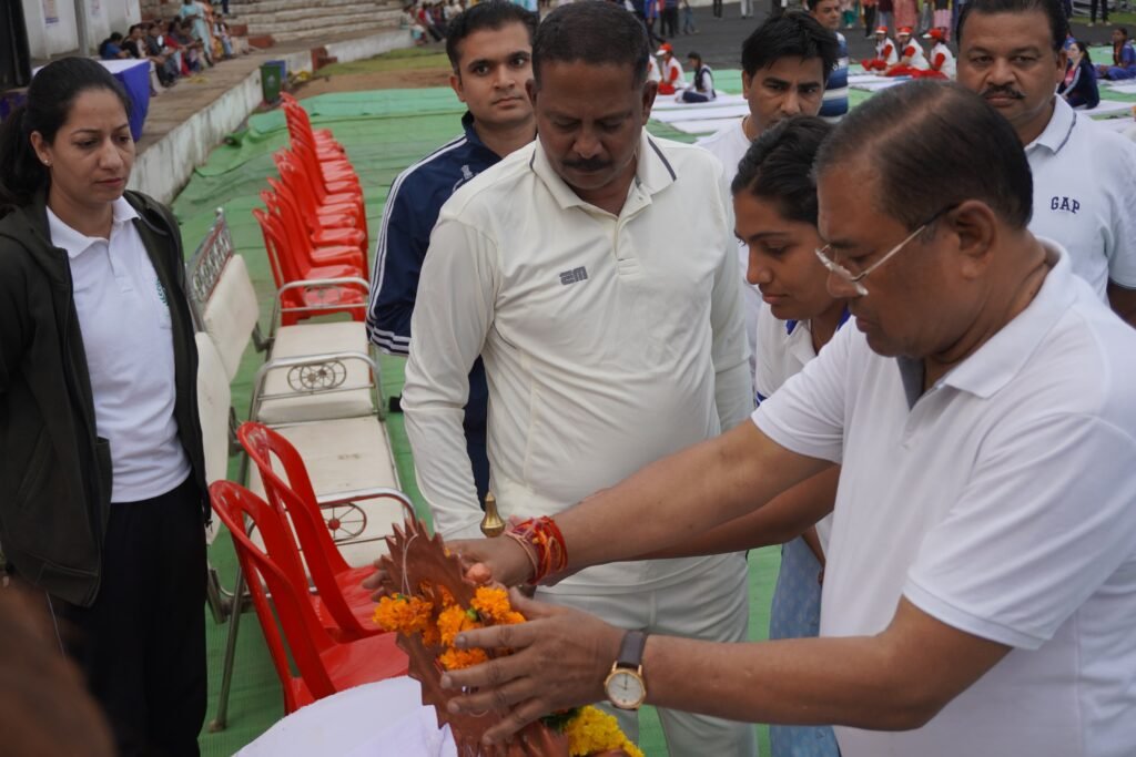 सिवनी 21 जून 25/ शनिवार 21 जून को 11 वां अंतर्राष्ट्रीय योग दिवस का जिलास्तरीय कार्यक्रम जिला मुख्यालय स्थित फुटबॉल स्टेडियम में आयोजित हुआ। कार्यक्रम में मुख्य अतिथि के रूप सांसद फग्गन सिंह कुलस्ते एवं विधायक सिवनी दिनेश राय शामिल हुए। इस अवसर जिला पंचायत अध्यक्ष श्रीमती मालती डहेरिया, जिला भाजपा अध्यक्ष श्रीमती मीना बिसेन, कलेक्टर सुश्री संस्कृति जैन, पुलिस अधीक्षक सुनील मेहता, अपर कलेक्टर सी एल चनाप, अपर कलेक्टर सुश्री सुनिता खंडायत, आलोक दुबे सहित अन्य जनप्रतिनिधियों, सभी विभागीय अधिकारी कर्मचारियों, शिक्षकों एवं गणमान्य नागरिकों सहित छात्र छात्राओं की उपस्थिति रही।