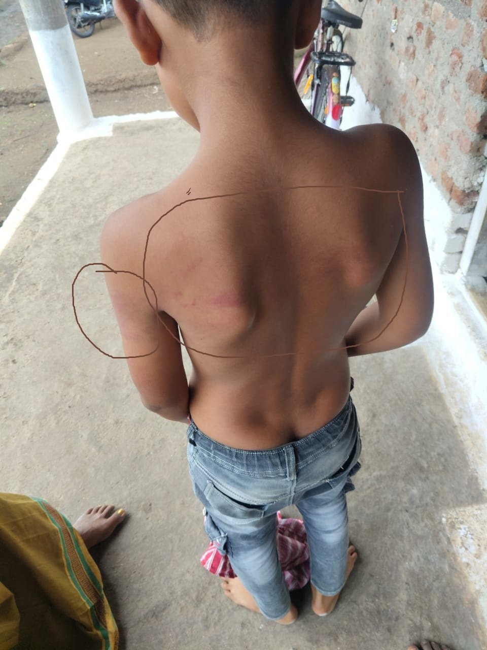 सिवनी – प्रति मंगलवार सरकार की मंशानुरूप जनसुनवाई का आयोजन कलेक्टर कार्यालय में किया जाता है जहां पर कलेक्टर से जनसुनवाई के दौरान छपारा जनपद अंतर्गत ढुलबजा निवासी संध्या पिता झामसिंह भलावी ने बताया कि उसके बच्चे की पिटाई स्कूल की शिक्षिका द्वारा बच्चे से हाथ पैर दबाने को कहा गया बच्चेे इंकार किया तो उसकी बडी ही निर्दयता से लाठी से शिक्षिका ने पिटाई कर दी जिससे बच्चे के पीठ में निशान तक उभर आए जिससे गुस्साए परिजनो ने बताया कि नवीन प्राथमिक शाला ढुलबजा में पदस्थ रुबीना बिलसन (शिक्षिका) द्वारा बच्चे की पिटाई की गई जिसके बाद बच्चा रात भर पीडा के सो नही पाया जिसके बाद दूसरे दिन बच्चे की माॅ पुलिस थाना छपारा पहुॅची जहां शिकायत दर्ज कराई है जिसके बाद बच्चे के परिजन समेत ग्राम के लोग जनसुनवाई में शिक्षिका की शिकायत लेकर पहुॅचे और शिक्षिका के खिलाफ कठोर कार्रवाई की बात की। बच्चे का नाम अरुण भलावी पिता झामसिंह भलावी उम्र 9 साल बताया जा रहा है।