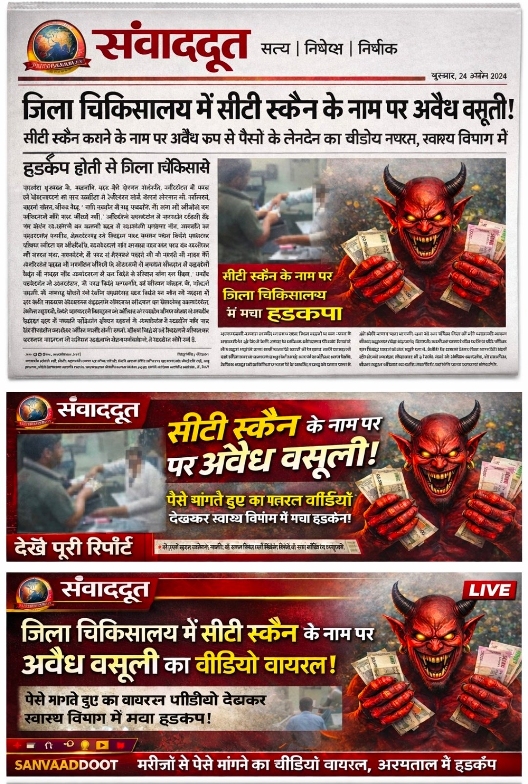 सिवनी – भूख है कि शांत ही नही होती सरकार जितना आदमी जितना भी धनवान हो जाए कुछ लोग पैसा कमाने का शार्टकट अपनाने की कोशिश करते है और वही उनकी बडी भूल होती है जहां वे खुद के बनाए जाल में फस जाते है कुछ ऐसा ही नगर के जिला चिकित्सालय में देखने को मिला भारत सरकार और मध्यप्रदेश सरकार अंतिम छोर तक के व्यक्ति को बेहतर स्वास्थ्य सेवा देने के लिए जिला अस्पताल में सभी सुविधाएं उपलब्ध करा रही हैं यहां तक की प्राइवेट टेंडर करके मरीज को लाभ दिलाया जा रहा है पर सिवनी जिला अस्पताल में मरीज का सिटी स्किन करवाने के लिए कंप्यूटर ऑपरेटर ने कहा आयुष्मान कार्ड नहीं चलता.रुपए लगेंगे और रुपए लेने तथा आयुष्मान कार्ड नहीं चलेगा कहने का वीडियो भी वायरल हुआ. संवाददूत की टीम जब पड़ताल करने जिला अस्पताल में अधिकारी और कर्मचारियों के पास पहुंची तो वहा कोई जवाब नहीं दिया गया. मुख्य स्वास्थ्य एवं चिकित्सा अधिकारी ने कहा कि मामला संज्ञान में आया है आयुष्मान कार्ड धारक को किसी भी प्रकार के रुपए मांगने या देने की आवश्यकता नहीं है. लेकिन जिस तरह वीडियो सामने आया उस पर संज्ञान लिया गया है और कार्यवाही की जाएगी. लगातार जिला अस्पताल में मरीजों तथा हितग्राही के साथ छलावा किया जा रहा है. जिला प्रशासन तथा स्वास्थ्य जिला व्यवस्थाओं पर कई सवाल खड़े हो रहे है।