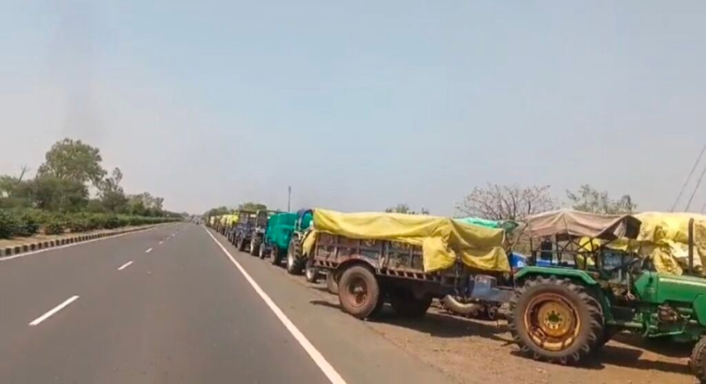 एनएच-44 पर ट्रैक्टर-ट्रॉलियों की लंबी कतार लग गई है