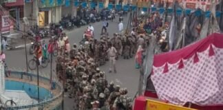 पुलिस का निकला फ्लेग मार्च।